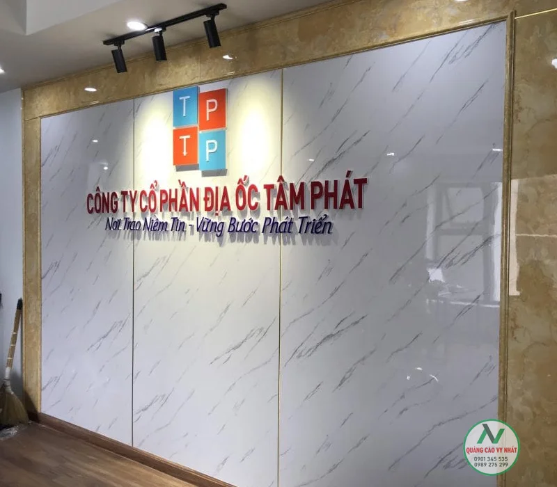 Backdrop quầy lễ tân chữ nổi đèn Led được sản xuất theo quy trình hiện đại, đòi hỏi kỹ thuật và tay nghề cao đảm bảo sản phẩm chất chuẩn, đẹp mắt và sang trọng. Công ty TNHH Quảng cáo và Nội thất VY NHẤT chúng tôi với hơn 15 năm hoạt động trong lĩnh vực bảng hiệu quảng cáo,với đội ngủ dày dặn kinh nghiệm, có tinh thần trách nhiệm cao, thi công nhanh chóng , tiết kiệm thời gian và chi phí, chúng tôi luôn mang đến cho quý khách hàng những mẫu thiết kế độc đáo, mới lạ nhất hiện nay.